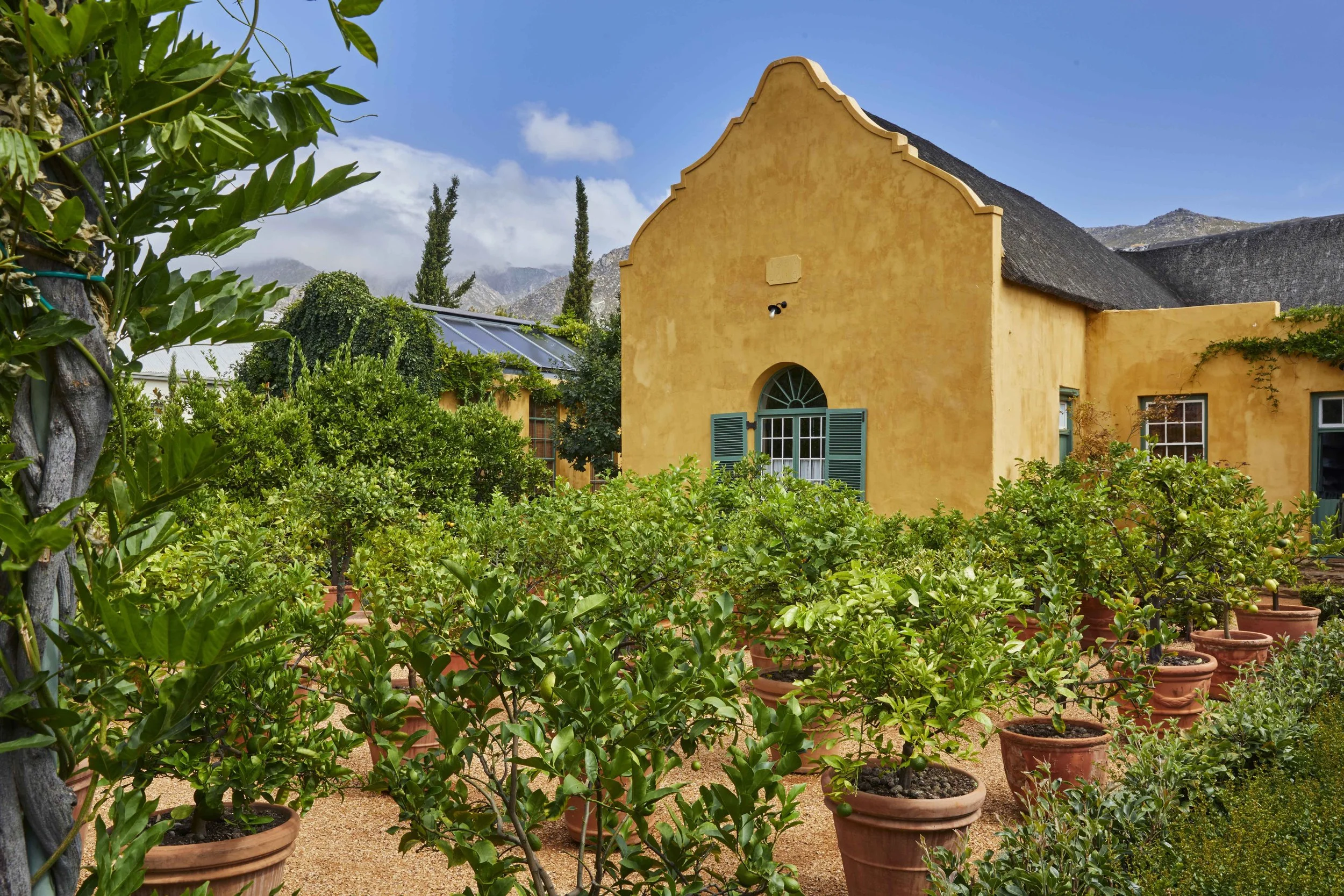 The estate features a thriving citrus orchard with a variety of trees, whose harvest is shared with guests and transformed into artisanal preserves or condiments at De Nagmaal, the nearby country store.